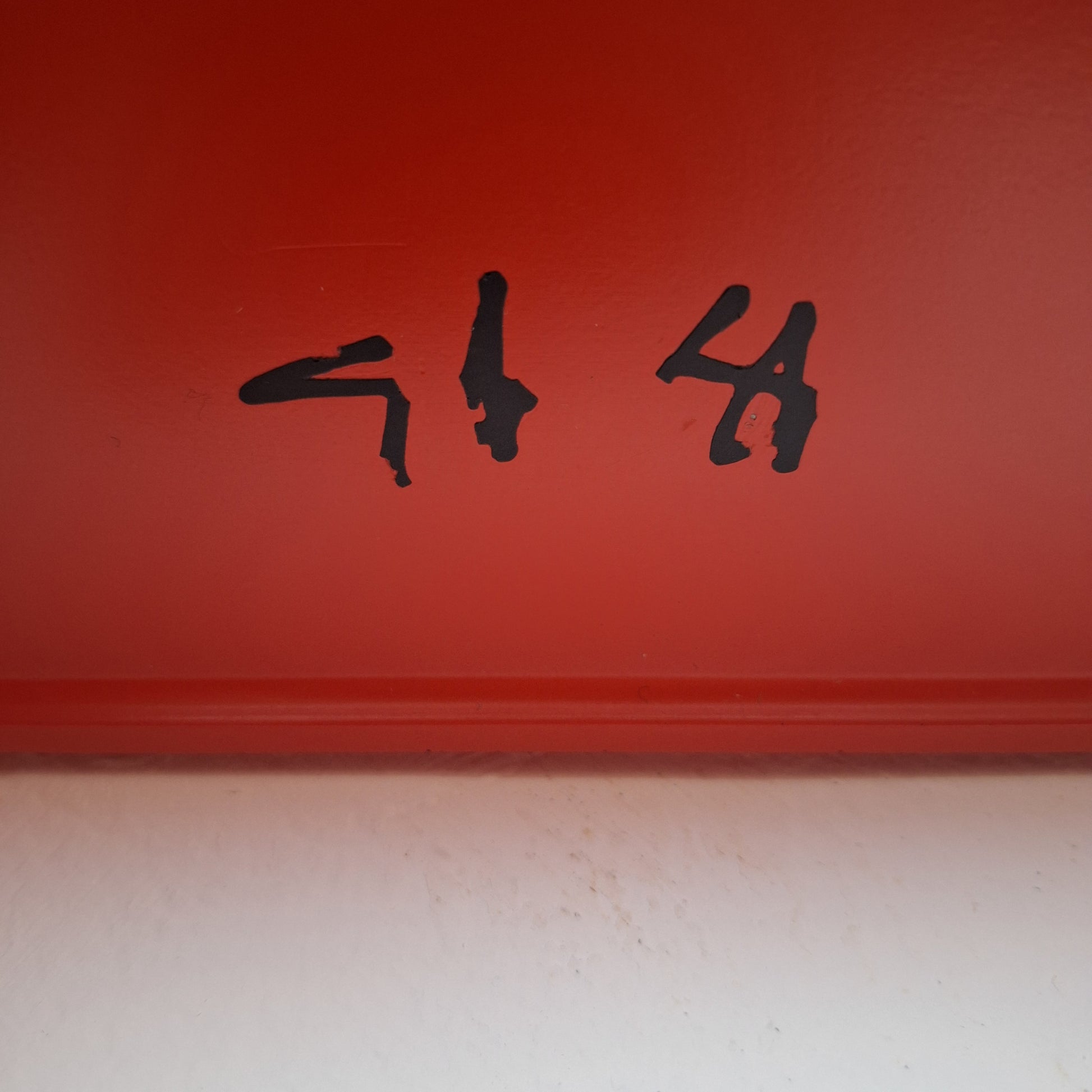 Simile alla scaffalatura progettata da Olaf Von Bohr per Kartell nel 1969, presenta una scritta usurata che potrebbe rappresentarne il marchio.