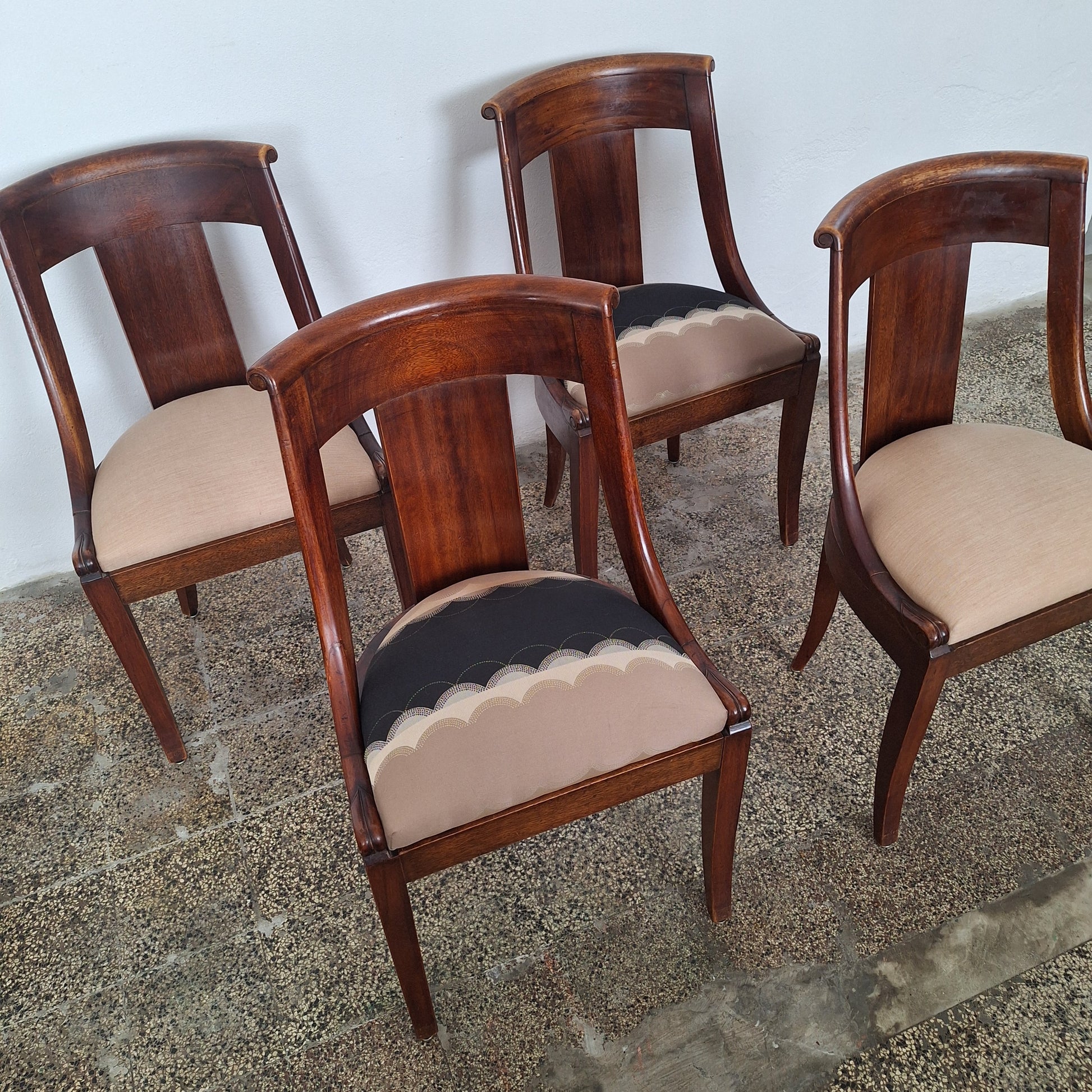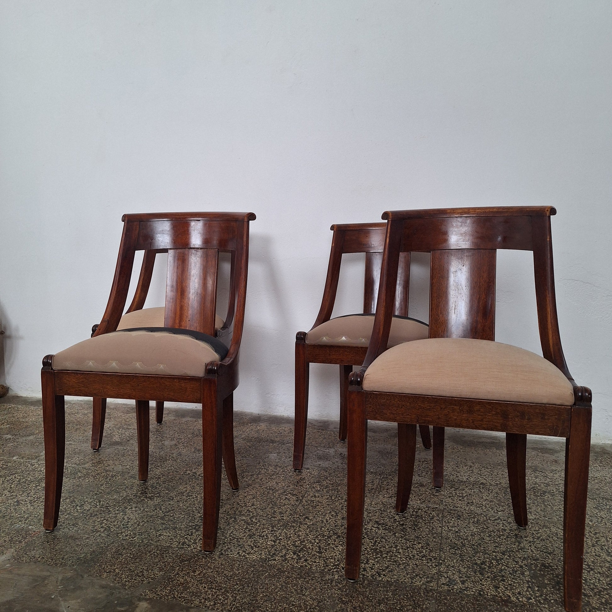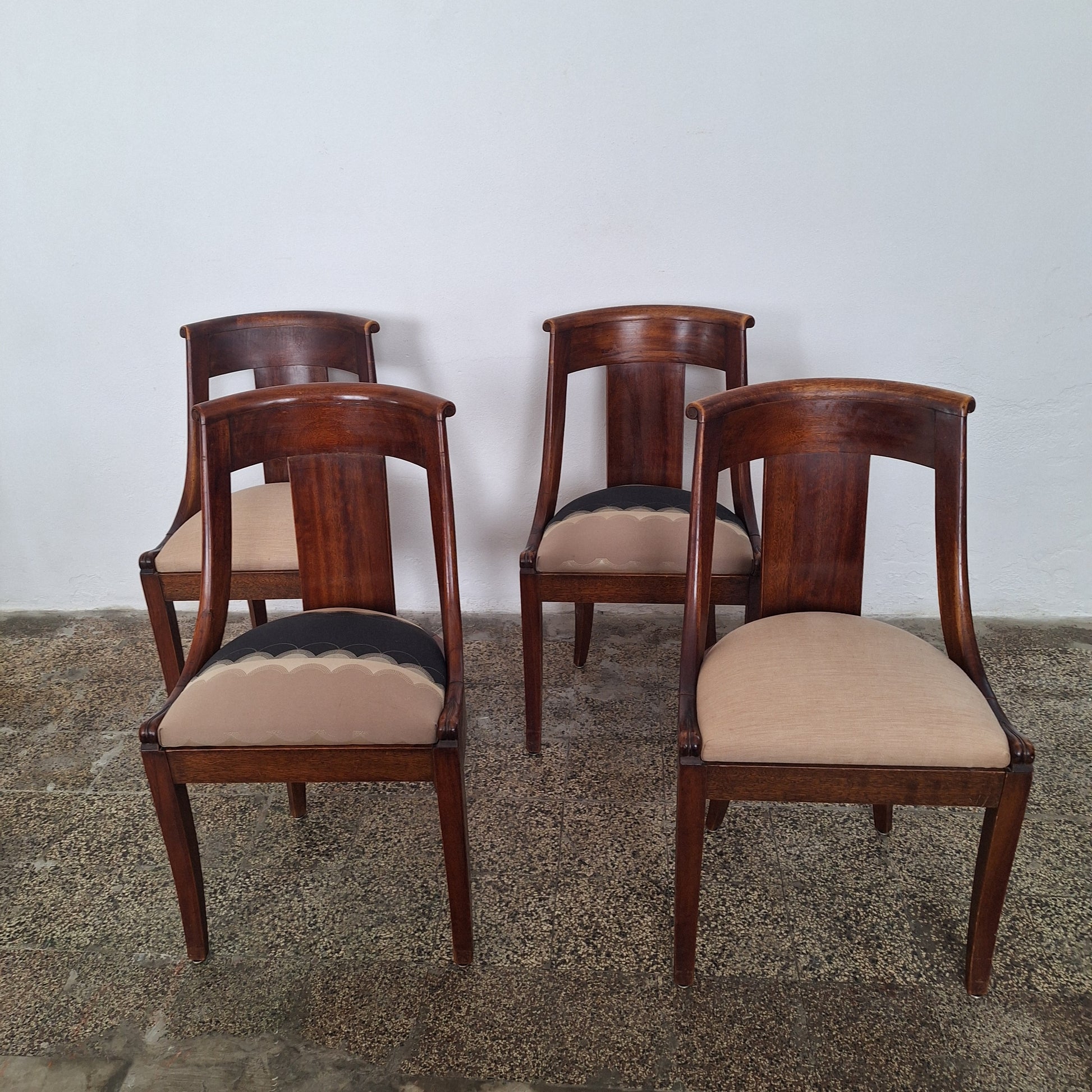 4 Sedie modello gondola stile impero, in mogano. Di provenienza francese di wpoca dine '800, primi '900.