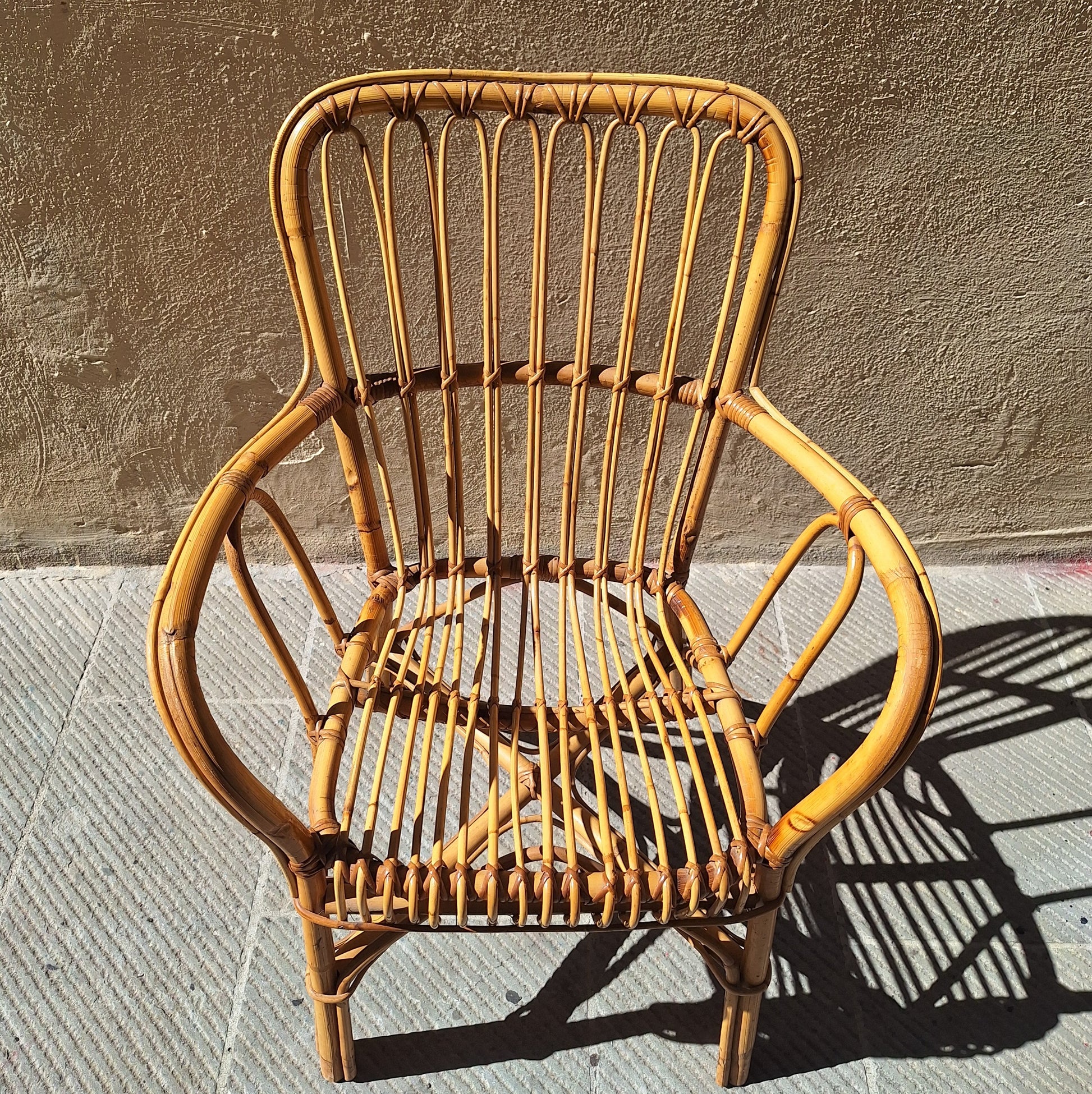 Poltroncina in bambù anni '80 di manifattura italiana. Ottime condizioni generali.