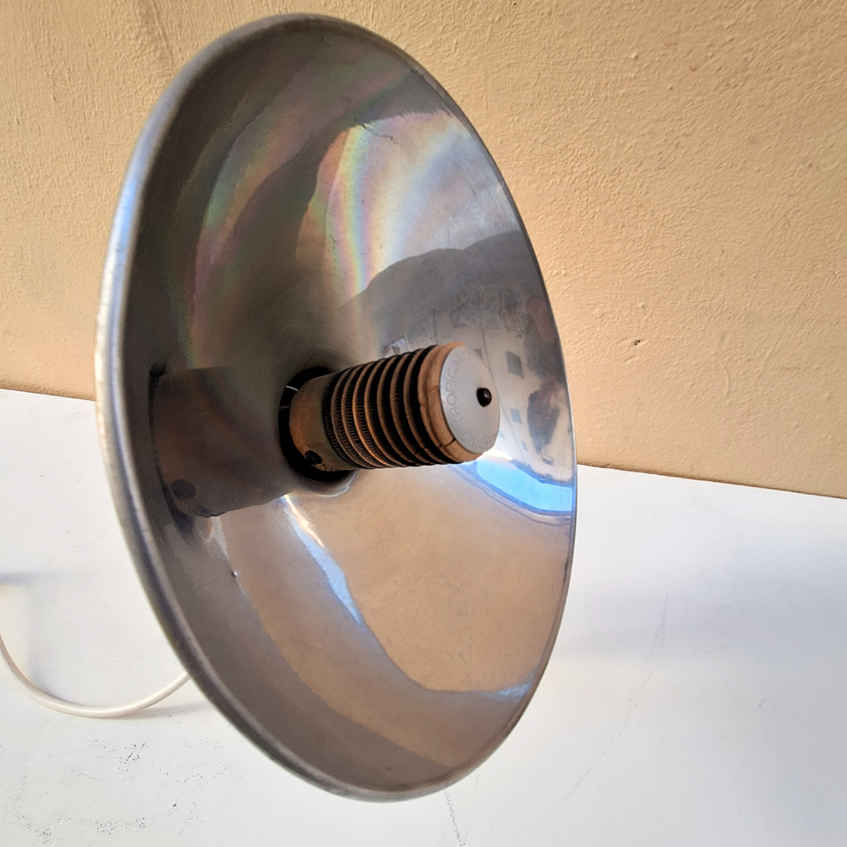 Lampada stufa elettrica anni '60 in metallo verniciato verde. La struttura si presenta in buone condizioni con lievi segni causati dal tempo. Funzionamento da verificare.